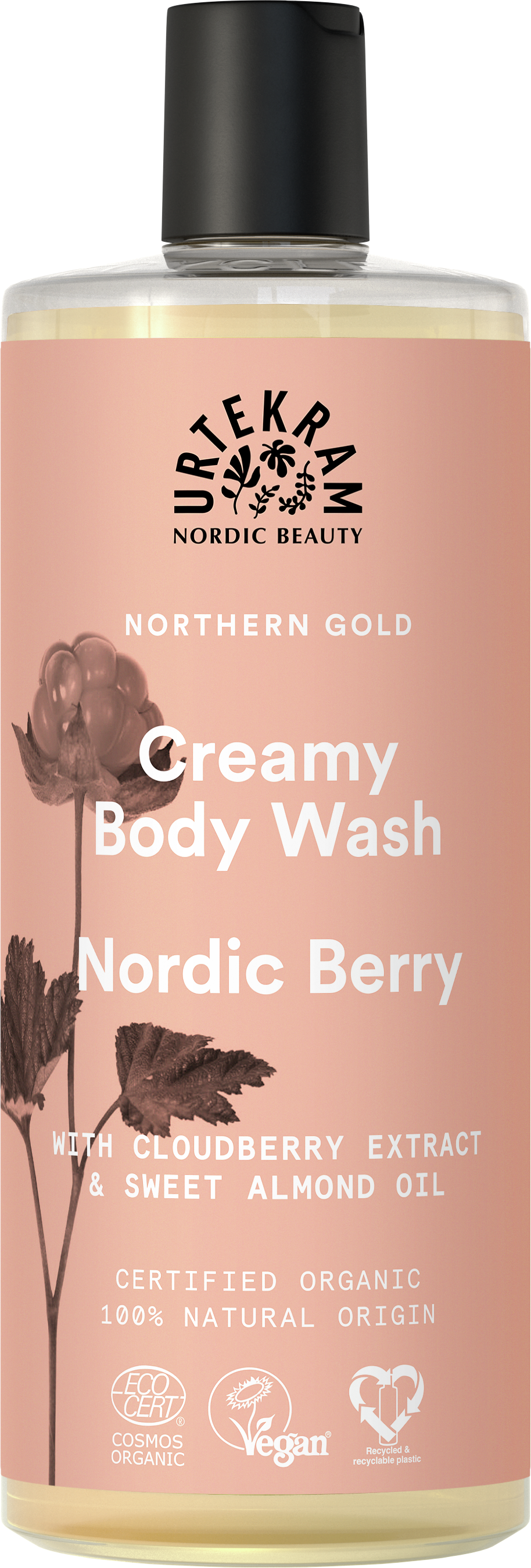 Ingredients: Aqua, Aloe Barbadensis Leaf Extract*, Lauryl Glucoside, Disodium Cocoyl Glutamate, Glycerin**, Prunus Amygdalus Dulcis Oil*, Coco-Glucoside, Sodium Cocoyl Glutamate, Sodium Chloride, Xanthan Gum, PCA Glyceryl Oleate, Rubus Chamaemorus Fruit Extract, Beta-Sitosterol, Squalene, Lysolecithin, Polyglyceryl-4 Caprate, Sodium Gluconate, Tocopherol, Lactic Acid, Sodium Hydroxide, Parfum (* = ingredient from organic farming, ** = made using ingredients from organic farming). 11% organic of total. 37% organic of total minus water and minerals. 100% natural origin of total. COSMOS ORGANIC certified by Ecocert Greenlife according to COSMOS Standard.